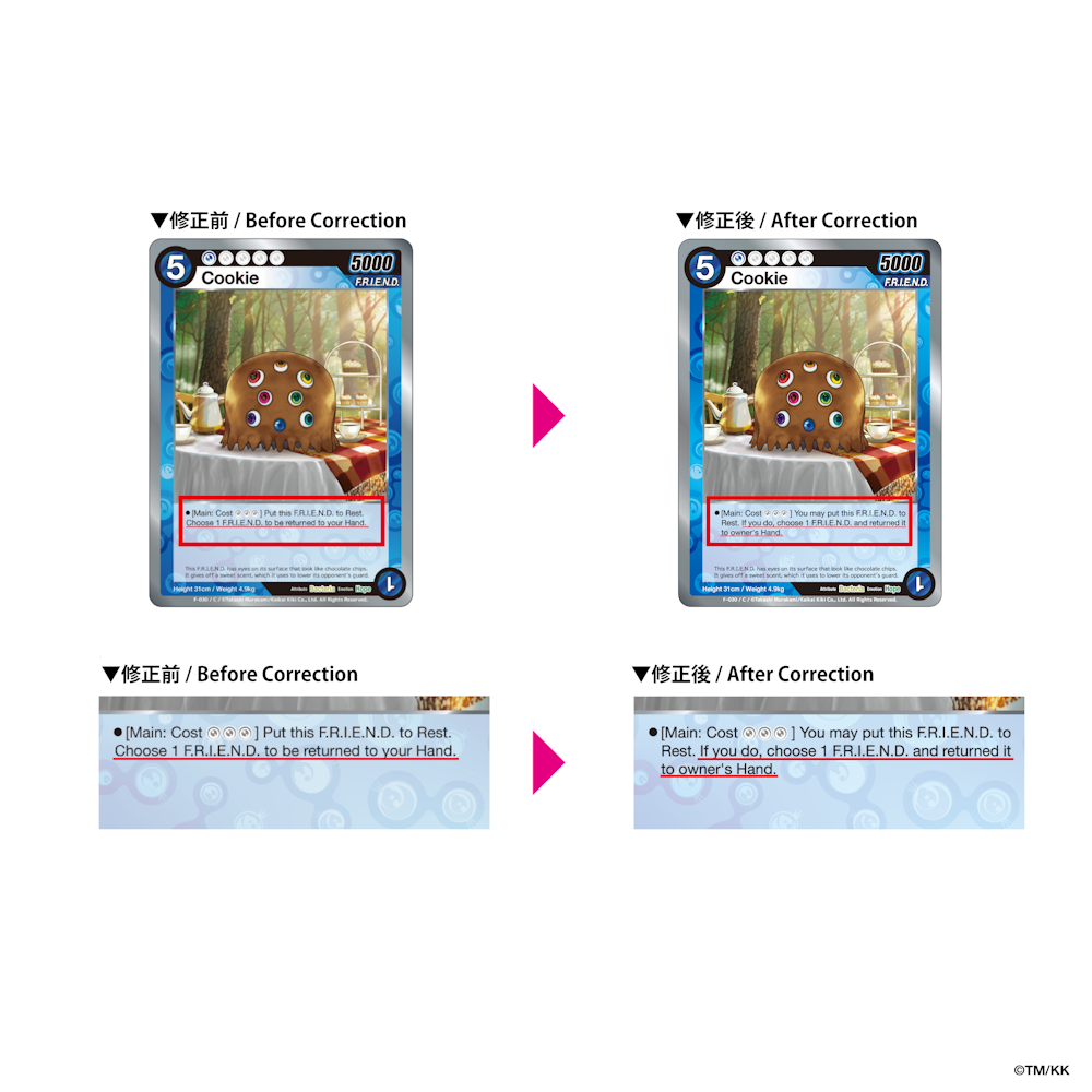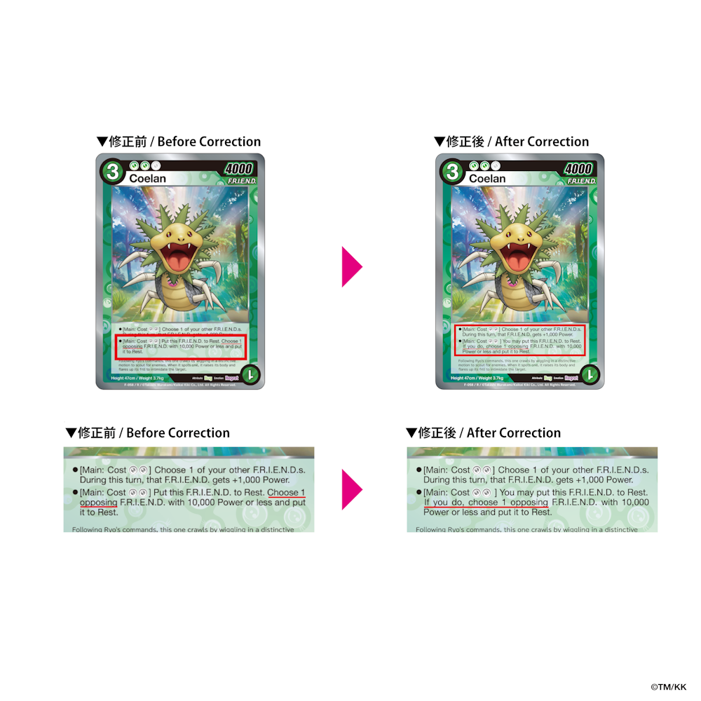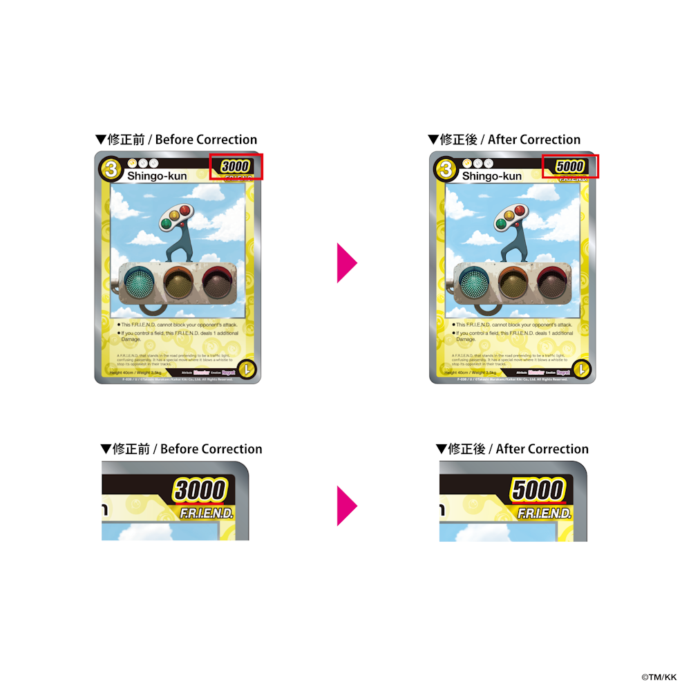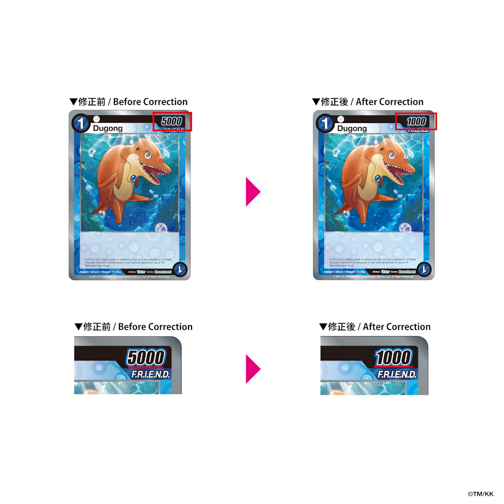 また、公式大会等において当該誤植カードをご使用される場合は、カードの記載内容にかかわらず、修正後の内容を正として取り扱います。