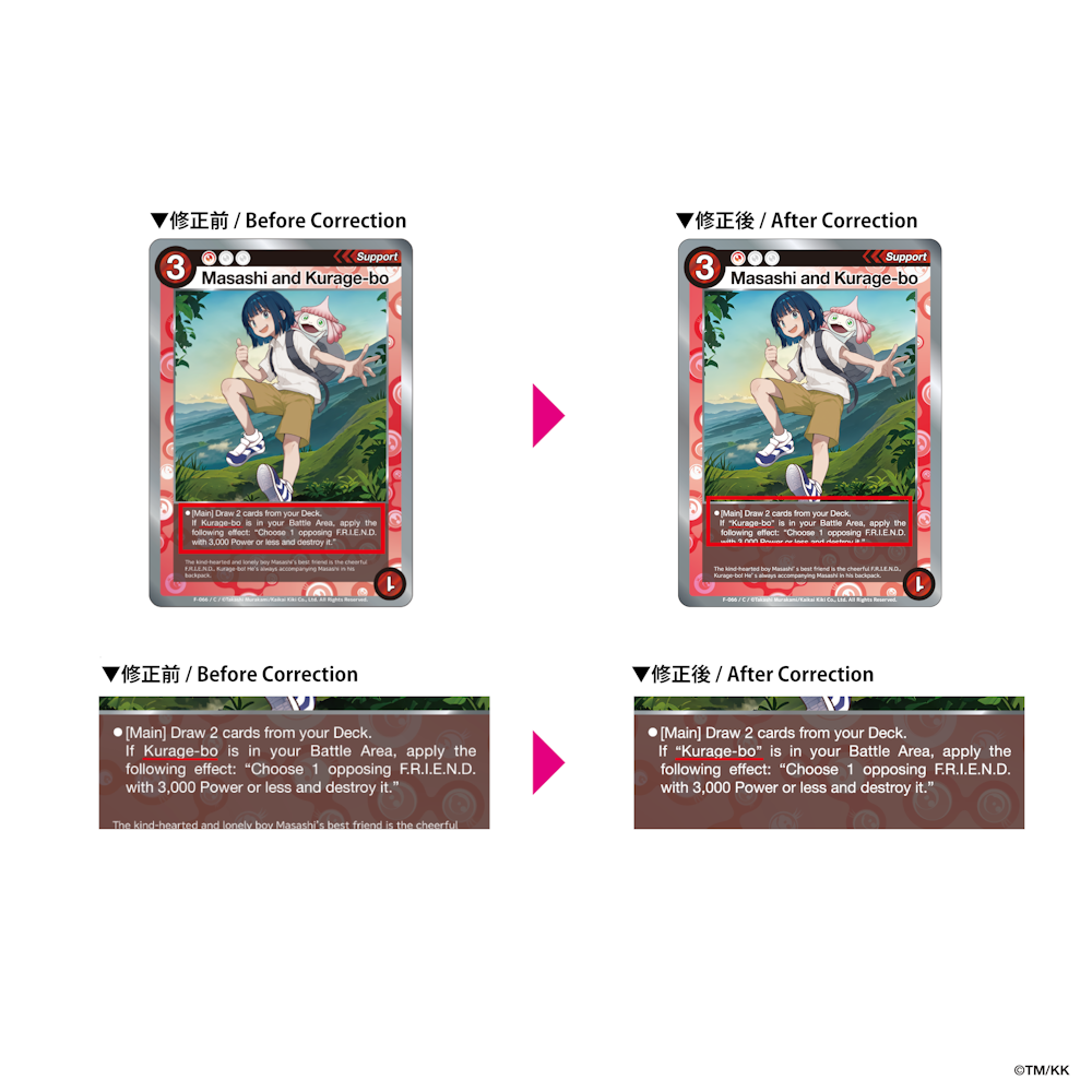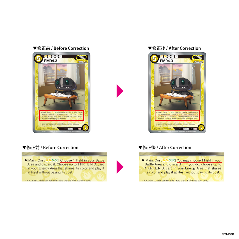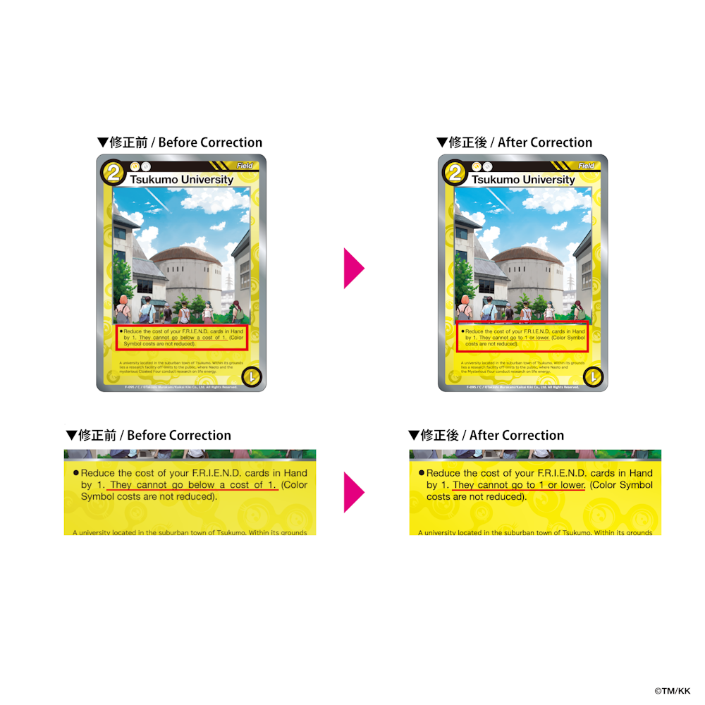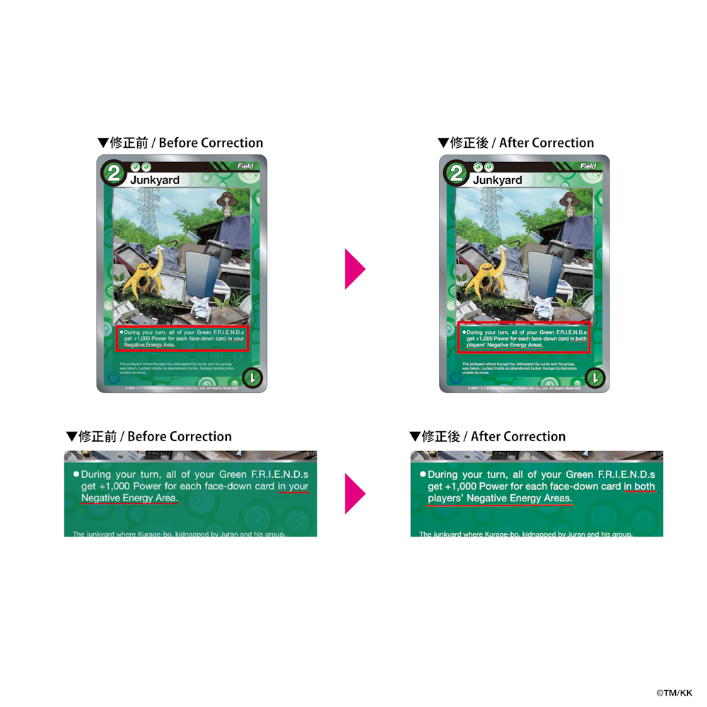 また、公式大会等において当該誤植カードをご使用される場合は、カードの記載内容にかかわらず、修正後の内容を正として取り扱います。