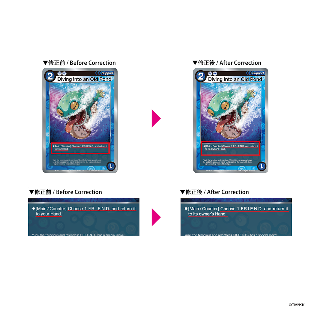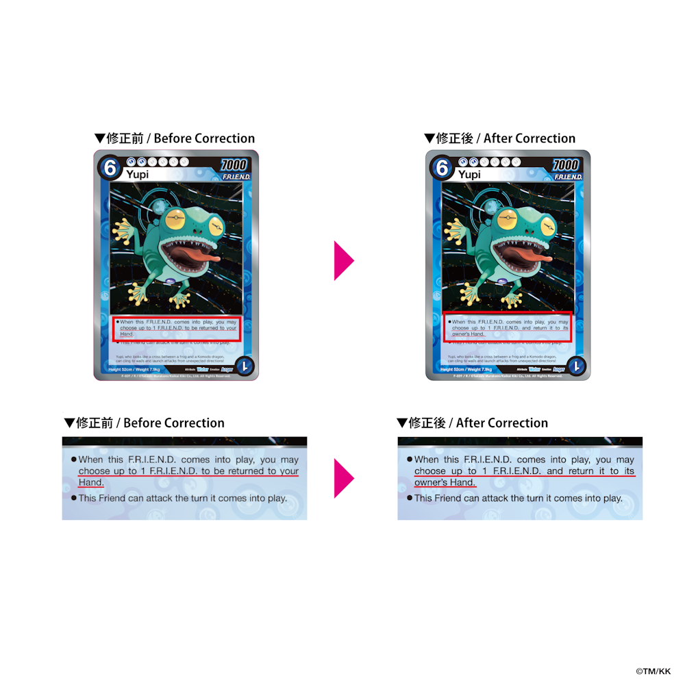 2025年9月に発売いたしました英語版「Jellyfish Eyes TCG - F.R.I.E.N.D. BATTLE」につきまして、一部カードに誤植が発生していることが判明いたしました。